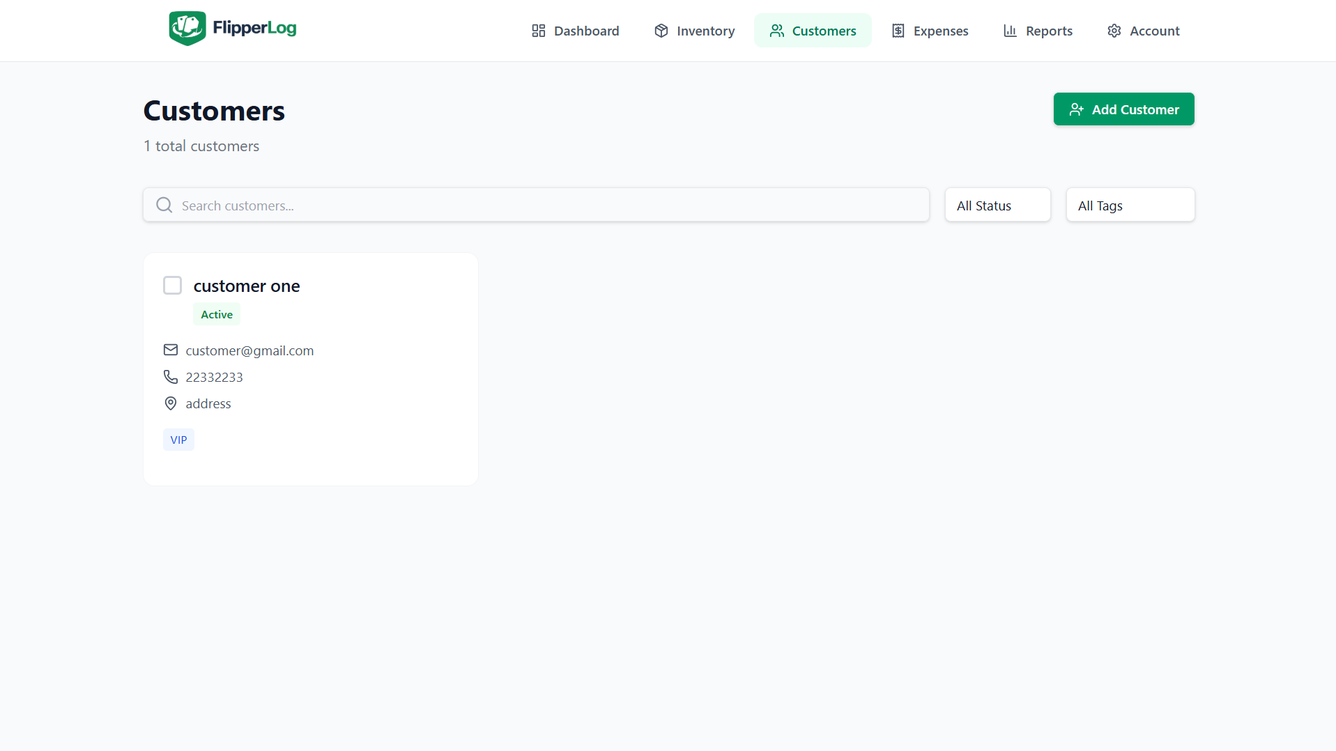 Add customers and link them to sold items. See total purchases and total spent per customer, plus full purchase history. Store name, email, phone, and notes so you can follow up and identify repeat or high-value buyers.